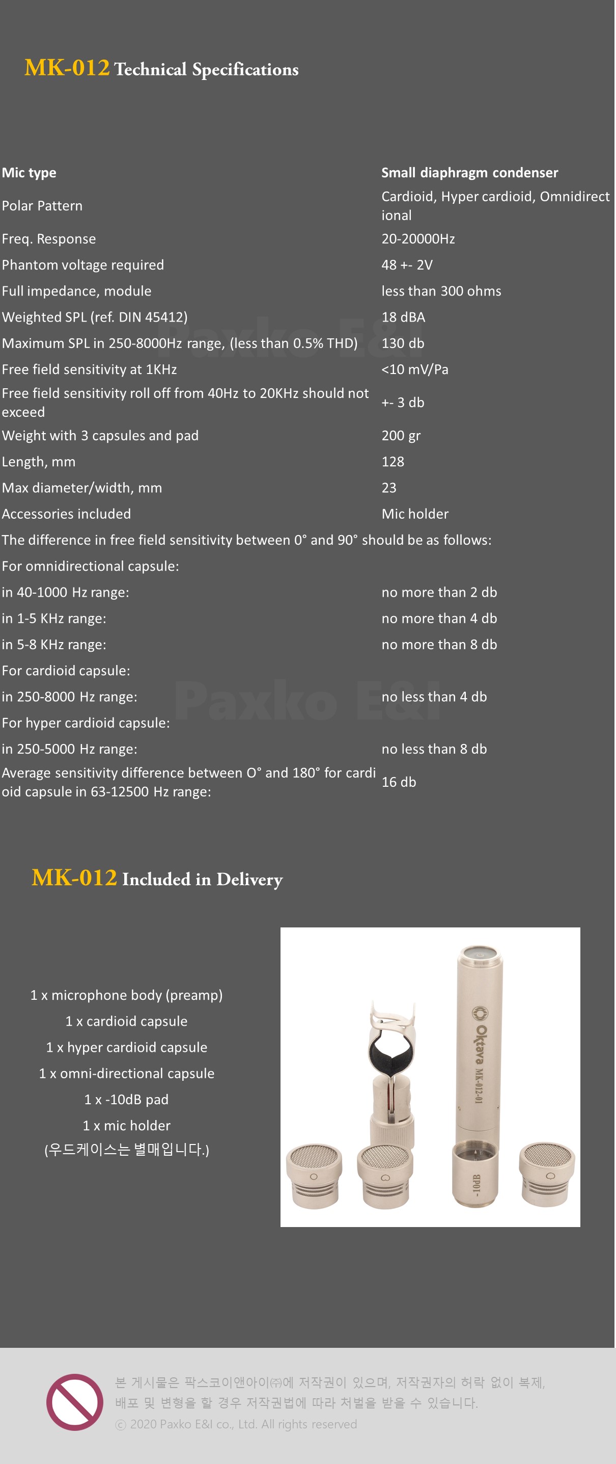 Oktava 캡슐교체 펜슬형 콘덴서마이크 (단일지향성, 초지향성, 무지향성)